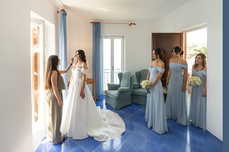 Creating a Scrajo Terme Wedding Reportage means immersing oneself in an atmosphere where history meets the stunning beauty of the Sorrento Coast. The Scrajo Terme Hotel & Spa is not just a prestigious venue, but a soulful place where natural light dances between classical architecture and terraces overlooking the sea, offering photographers unique backdrops for unforgettable shots.